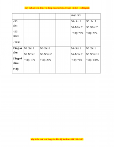 Tổng số Tỉ lệ: 10% Tỉ lệ: 20% Tỉ lệ: 70% Tỉ lệ: 100% điểm: Tỉ lệ:
