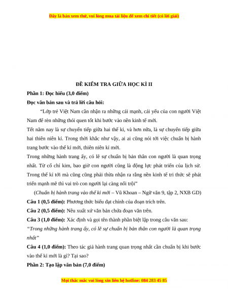 Đây là bản xem thử, vui lòng mua tài liệu để xem chi tiết (có lời giải)