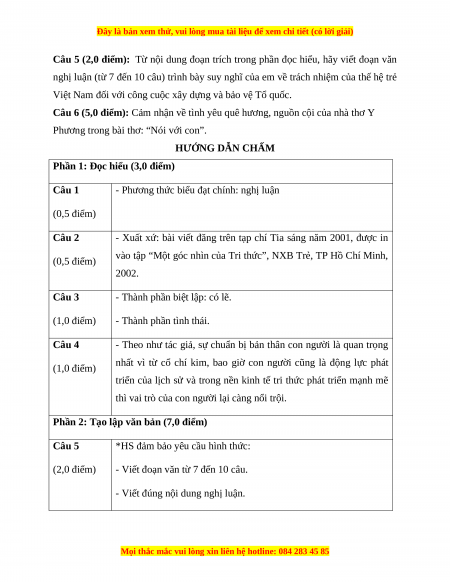 Phần 2: Tạo lập văn bản (7,0 điểm) Câu 5