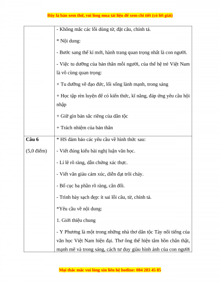Câu 6 (5,0 điểm):OCảm nhận về tình yêu quê hương, nguồn cội của nhà thơ Y