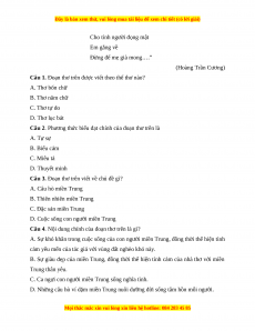 Câu 2. Phương thức biểu đạt chính của đoạn thơ trên là A. Tự sự B. Biểu cảm C. Miêu tả D. Thuyết minh