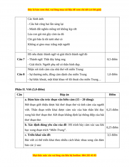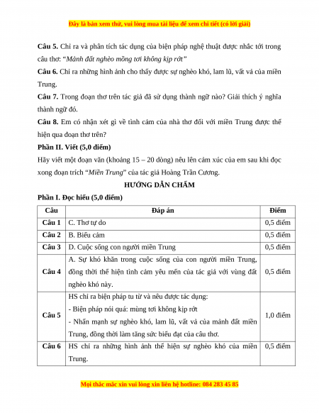 xong đoạn trích “Miền Trung” của tác giả Hoàng Trần Cương. HƯỚNG DẪN CHẤM