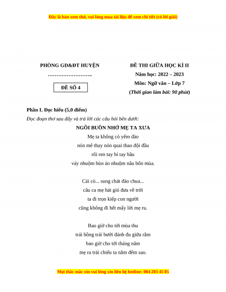 Đây là bản xem thử, vui lòng mua tài liệu để xem chi tiết (có lời giải)