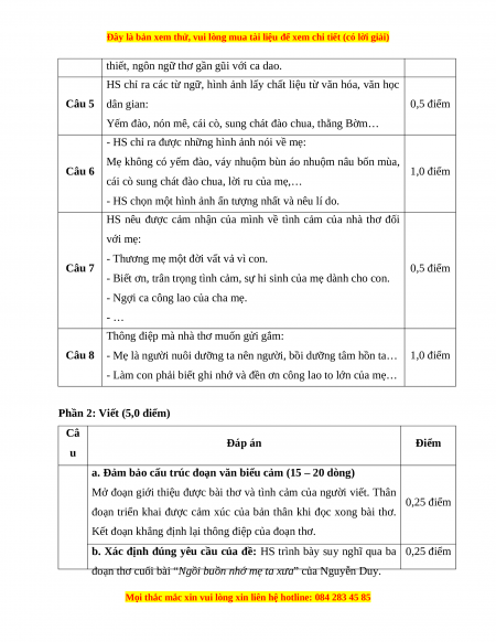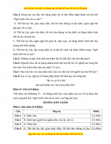 Câu 2 B. Hình ảnh người mẹ nghèo khó, lam lũ, vất vả. 0,5 điểm Câu 3 D. Nhân hóa 0,5 điểm