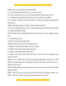 D. Người có bản lĩnh vừa đạt được mục đích cá nhân vừa được Câu 4 0,5 điểm
