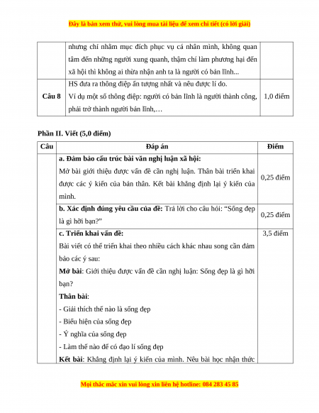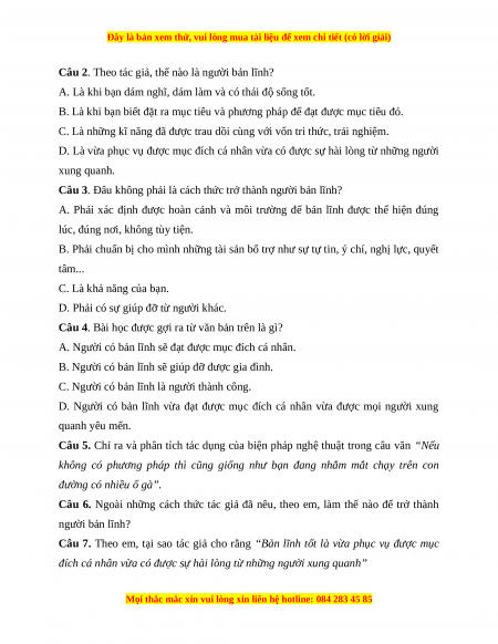 Câu 7 HS giải thích tác giả cho rằng “Bản lĩnh tốt là vừa phục vụ được 0,5 điểm