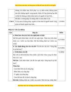 b. Xác định đúng yêu cầu của đề: Trả lời cho câu hỏi: “Sống đẹp 0,25 điểm là gì hỡi bạn?”