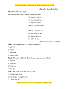Câu 1. Phương thức biểu đạt của đoạn trích trên là: A. Miêu tả B. Tự sự C. Biểu cảm D. Thuyết minh