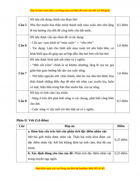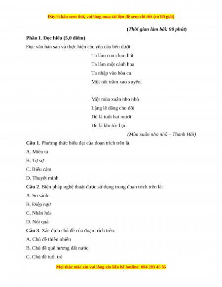 Câu 5 Nhà thơ muốn hóa thân mình thành một mùa xuân nho nhỏ lặng 0,5 điểm
