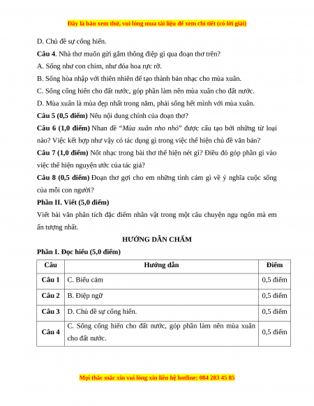 C. Sống cống hiến cho đất nước, góp phần làm nên mùa xuân Câu 4 0,5 điểm cho đất nước.