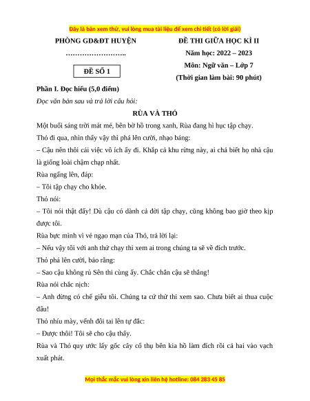 Đọc văn bản sau và trả lời câu hỏi: RÙA VÀ THỎ