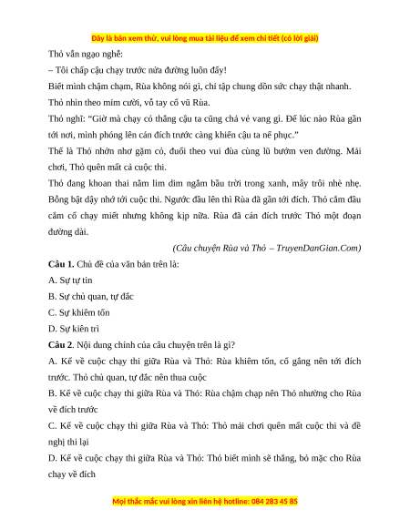 A. Kể về cuộc chạy thi giữa Rùa và Thỏ: Rùa khiêm tốn, cố Câu 2 0,5 điểm