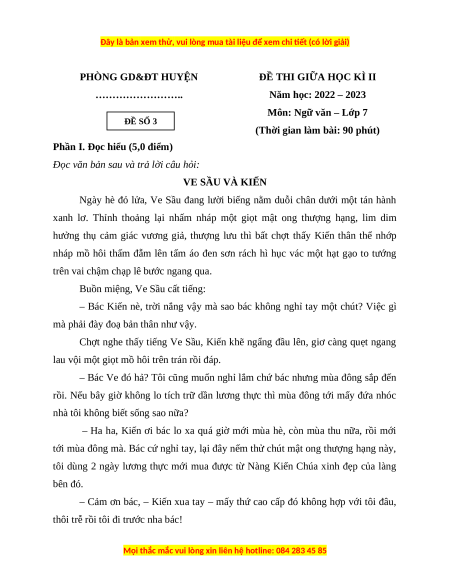 Môn: Ngữ văn – Lớp 7 ĐỀ SỐ 3
