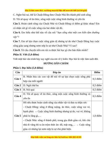 VD: Chọn sống một cuộc sống giản dị nhưng tự do như Chuột Câu 7 1,0 điểm