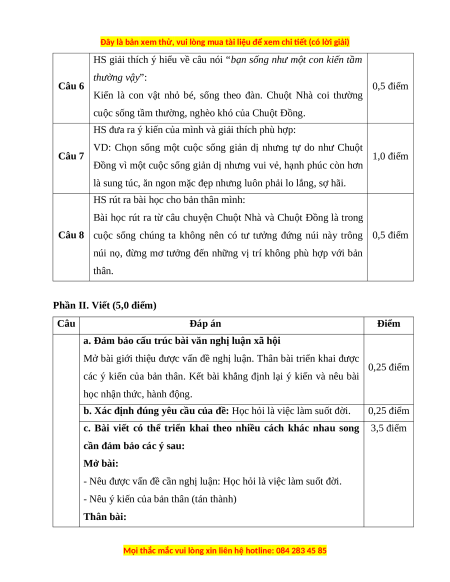 Phần II. Viết (5,0 điểm) Câu Đáp án Điểm