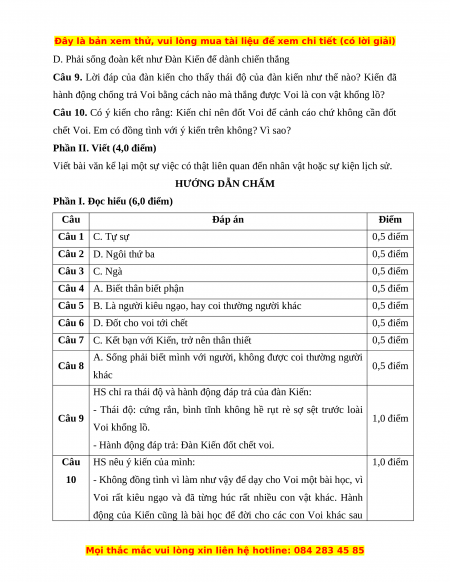 Câu 2 D. Ngôi thứ ba 0,5 điểm Câu 3 C. Ngà 0,5 điểm