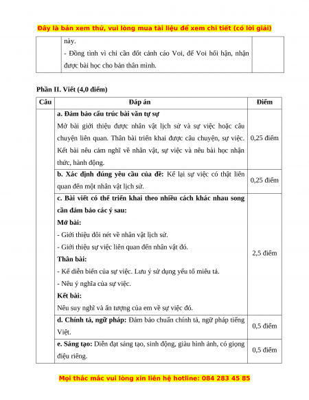 d. Chính tả, ngữ pháp: Đảm bảo chuẩn chính tả, ngữ pháp tiếng 0,5 điểm Việt.