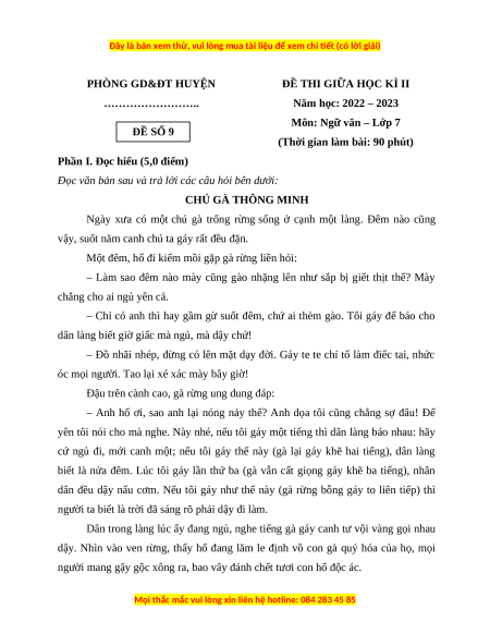 Môn: Ngữ văn – Lớp 7 ĐỀ SỐ 9