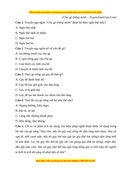 Câu 1. Truyện ngụ ngôn “Chú gà thông minh” được kể theo ngôi thứ mấy? A. Ngôi thứ nhất
