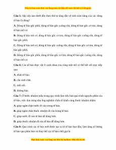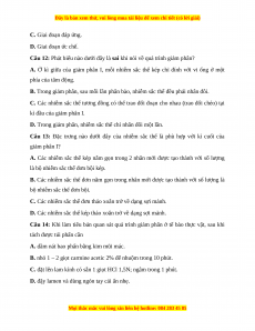 Câu 7: Ở bước nhuộm mẫu trong quy trình làm tiêu bản quá trình nguyên phân của