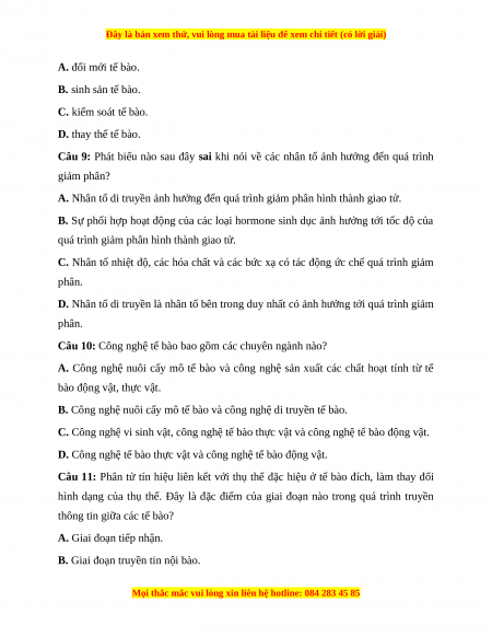 TÀI LIỆU BỘ BÁN CHẠY MÔN Sinh Học