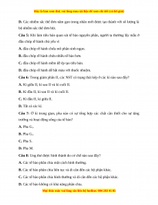 Câu 6: Trong giảm phân II, các NST có trạng thái kép ở các kì nào sau đây?