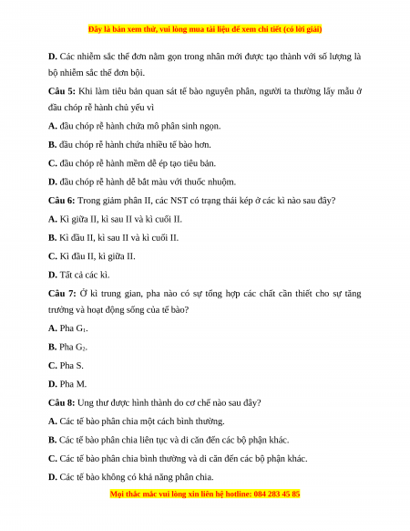 Câu 5: Khi làm tiêu bản quan sát tế bào nguyên phân, người ta thường lấy mẫu ở