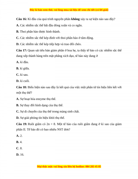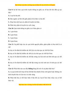 Câu 4: Đặc trưng nào dưới đây của nhiễm sắc thể là phù hợp với kì cuối của giảm phân I?