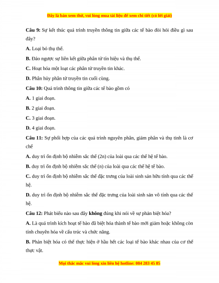 Câu 10: Quá trình thông tin giữa các tế bào gồm có A. 1 giai đoạn. B. 2 giai đoạn. C. 3 giai đoạn. D. 4 giai đoạn.