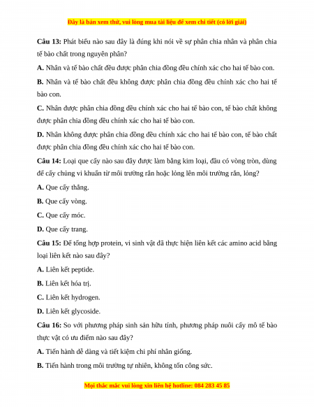 Câu 15: Để tổng hợp protein, vi sinh vật đã thực hiện liên kết các amino acid bằng