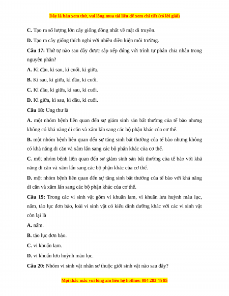 TÀI LIỆU BỘ BÁN CHẠY MÔN Sinh Học