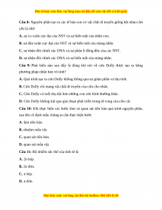 Câu 9: Phát biểu nào sau đây là đúng khi nói về cừu Dolly được tạo ra bằng