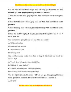 Câu 10: Khi thực hiện các bước làm và quan sát tiêu bản quá trình nguyên phân,
