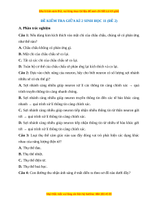 ĐỀ KIỂM TRA GIỮA KÌ 2 SINH HỌC 11 (ĐỀ 2)