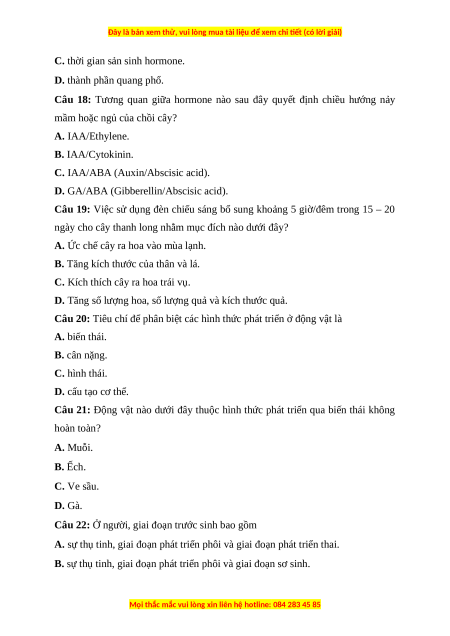 Câu 17: Mỗi loài thực vật ra hoa khi ở độ tuổi nhất định, phụ thuộc vào đặc điểm