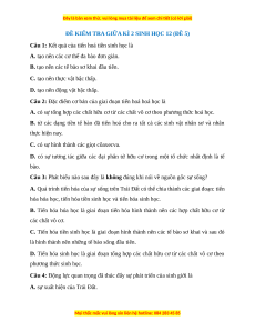 ĐỀ KIỂM TRA GIỮA KÌ 2 SINH HỌC 12 (ĐỀ 5)