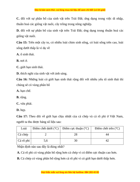 Câu 14: Quy luật giới hạn sinh thái có ý nghĩa