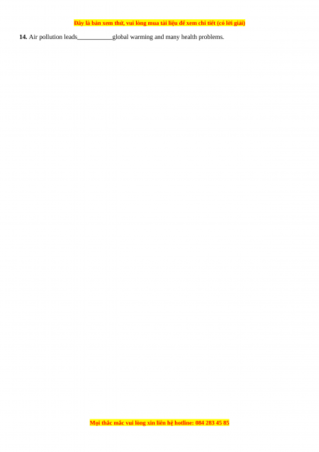 10. Traffic fumes contribute greatly to air in this city. A. pollute B. polluter C. pollutant D. pollution