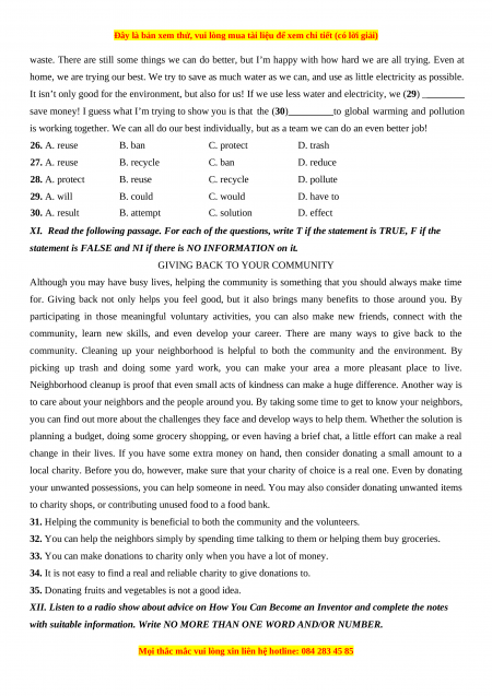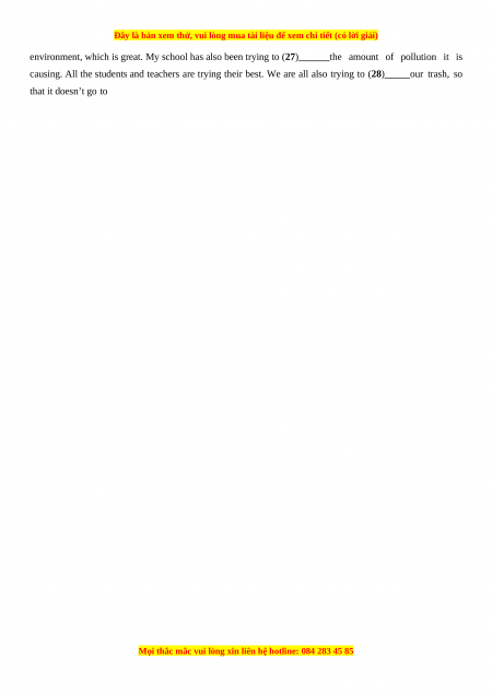 causing. All the students and teachers are trying their best. We are all also trying to (28) our trash, so that it doesn’t go to