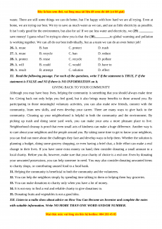 differs from the other three in pronunciation in each of the following questions. 1. A. ban B. damage C. landfill D. material 2. A. recycle B. compost C. cattle D. community
