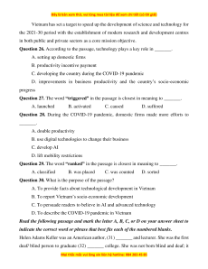 Question 28. During the COVID-19 pandemic, domestic firms made more efforts to _______. A. double productivity