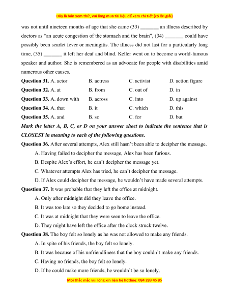 Chúng tôi đảm bảo đủ số lượng đề đã cam kết hoặc có thể nhiều hơn, tất cả có BẢN WORD, LỜI GIẢI CHI TIẾT và tải về dễ dàng.