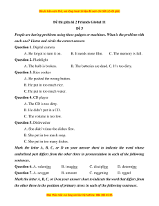 Đề thi giữa kì 2 Friends Global 11 Đề 5