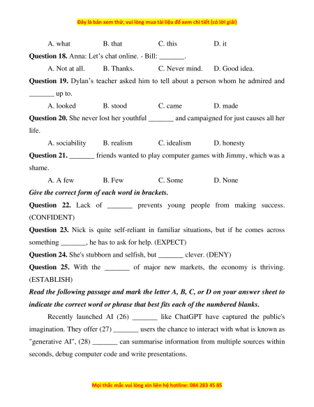 Question 22. Lack of _______ prevents young people from making success. (CONFIDENT)