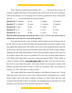 Read the following passage and mark the letter A, B, C, or D on your answer sheet to
