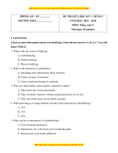 Listen to some information about cyberbullying. Circle the best answer A, B, or C. You will listen TWICE.