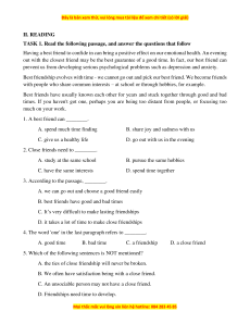 2. Close friends need to ________. A. study at the same school B. pursue the same hobbies C. have the same interests D. spend time together