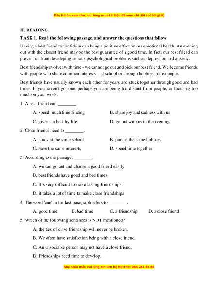 TASK 2. Read the following passage and mark the letter A, B, C, or D on your answer sheet