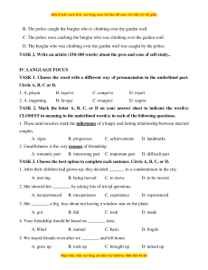 TASK 1. Choose the word with a different way of pronunciation in the underlined part. Circle A, B, C or D. 1. A. prison B. reserve C. conserve D. resort 2. A. mourning B. favour C. resource D. course