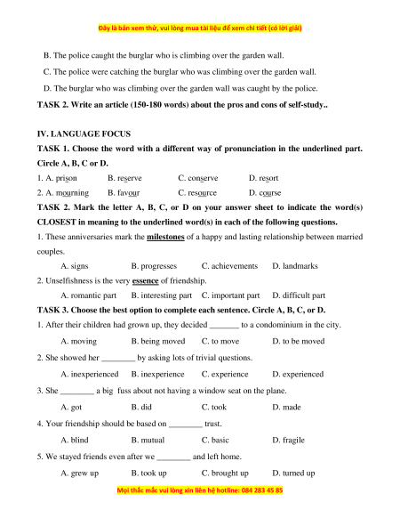 TASK 2. Write an article (150-180 words) about the pros and cons of self-study.. IV. LANGUAGE FOCUS